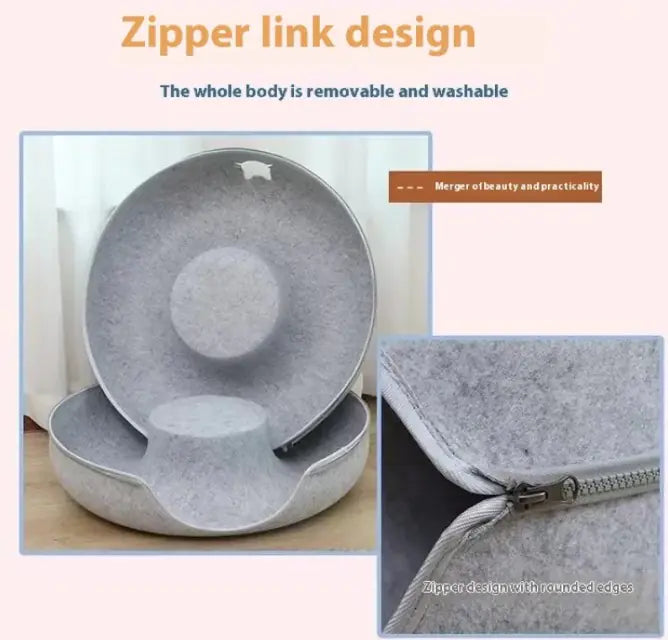 - 2-in-1 Design: Combines a soft, round pet bed with a built-in tunnel, giving your cat the option to rest, hide, or play, all in one cozy space.